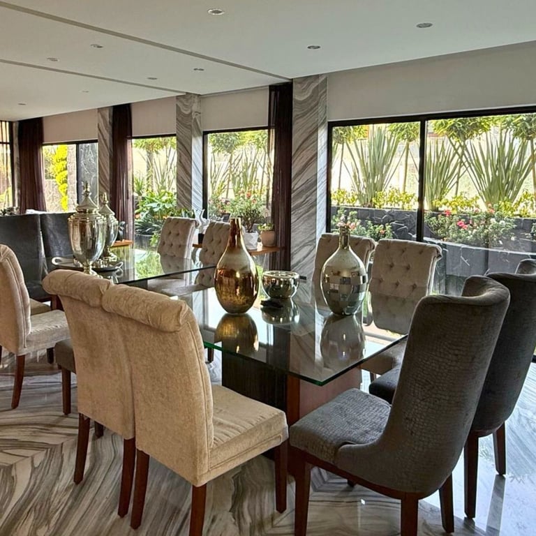 Distribuida en tres niveles de elegante arquitectura, esta residencia es el equilibrio perfecto entre sofisticación y bienestar. Sus interiores son una declaración de estilo: mármoles de gran formato y carpintería en madera de nogal se fusionan para crear una atmósfera cálida y contemporánea.