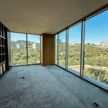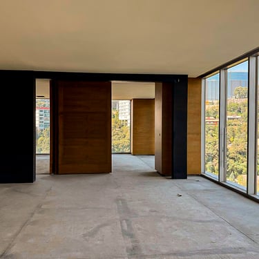 El departamento se entrega en una fase estratégica de obra blanca para ofrecerle la libertad de crear un proyecto de interiorismo de lujo, 100% a su medida. Explore la galería de imágenes y recorra los 585 m² de espacios que esperan su firma personal, todos bañados por la luz natural y la vista inigualable al Club de Golf Bosques de Santa Fe.